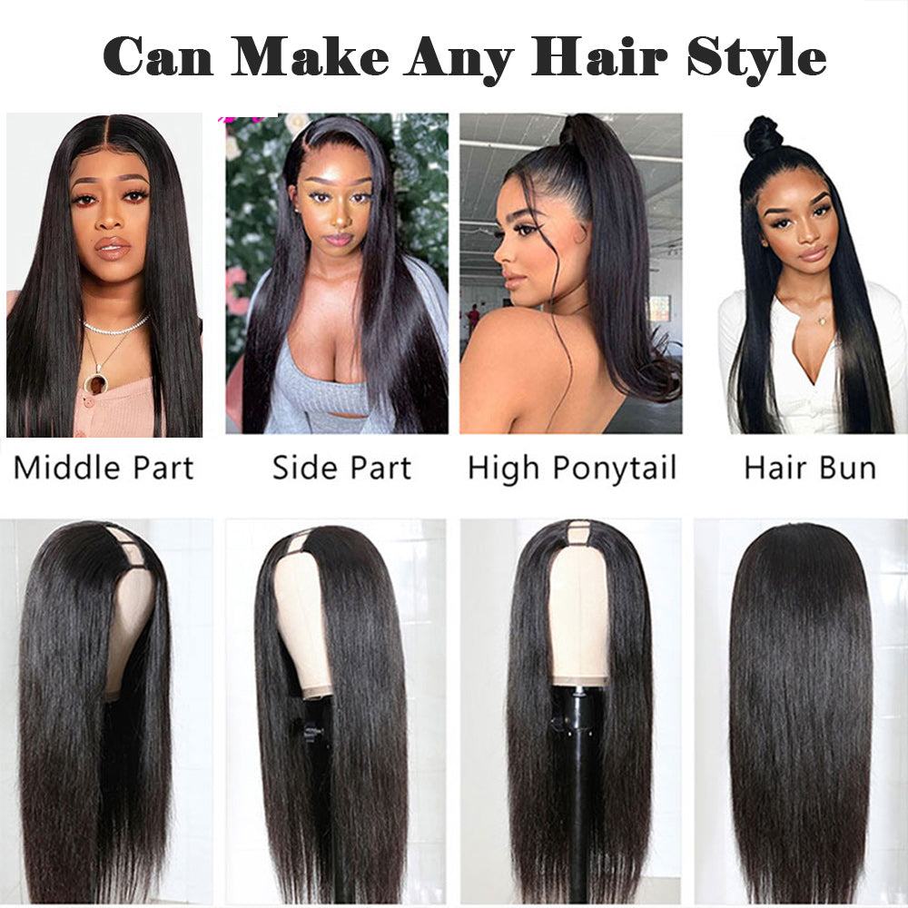 Straight #1B Natural Black U Part Wigs 100% Virgin Human Hair 180% Density