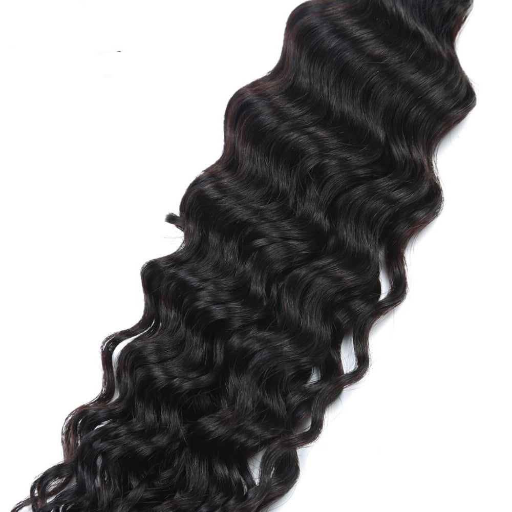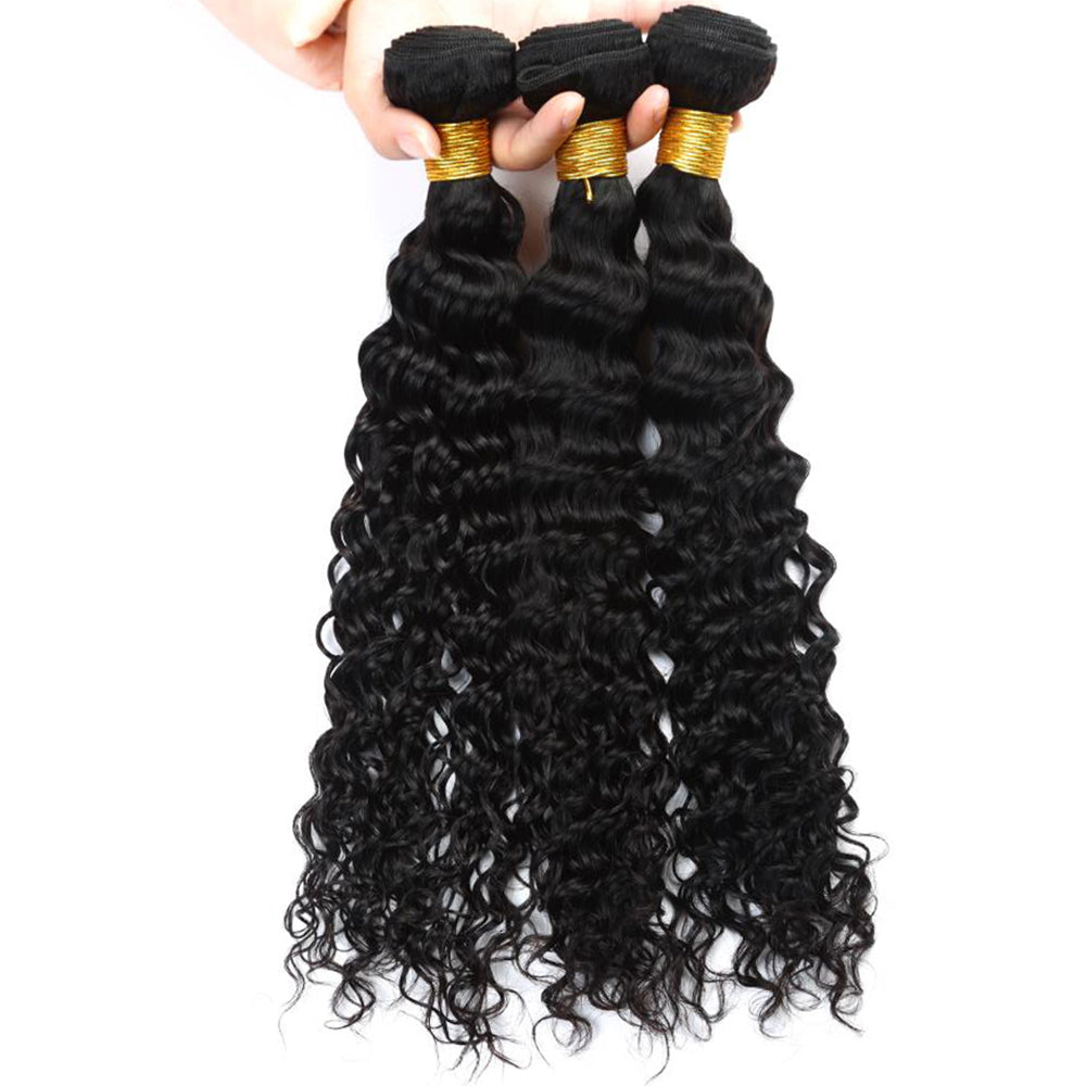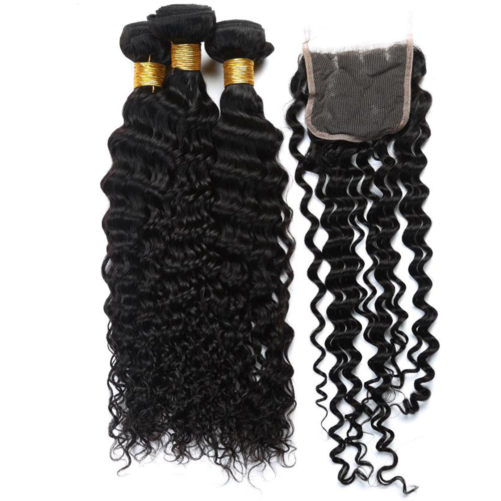 Bundle Deals With Closure Deep Curly Virgin Human Hair Natural Black